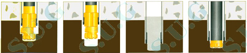 1¡¢When drilling starts, the reamer swings out and reams the pilot-hole wide enough for the casing tube to slide down behind the drill bit assembly.
